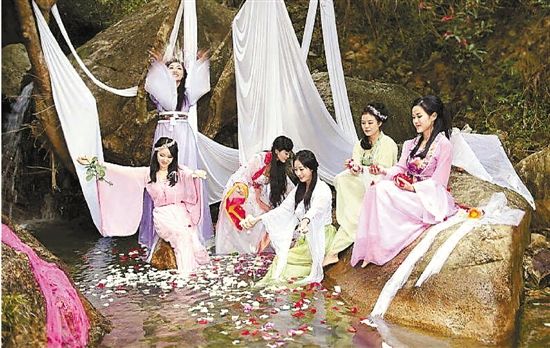 如果在现实生活中,在这样一个荒无人烟的山谷,眼前忽然出现这样一个场景,相信大多数人都会怀疑:是我穿越了,还是她们穿越了?难道,真有仙女下凡这样的事?