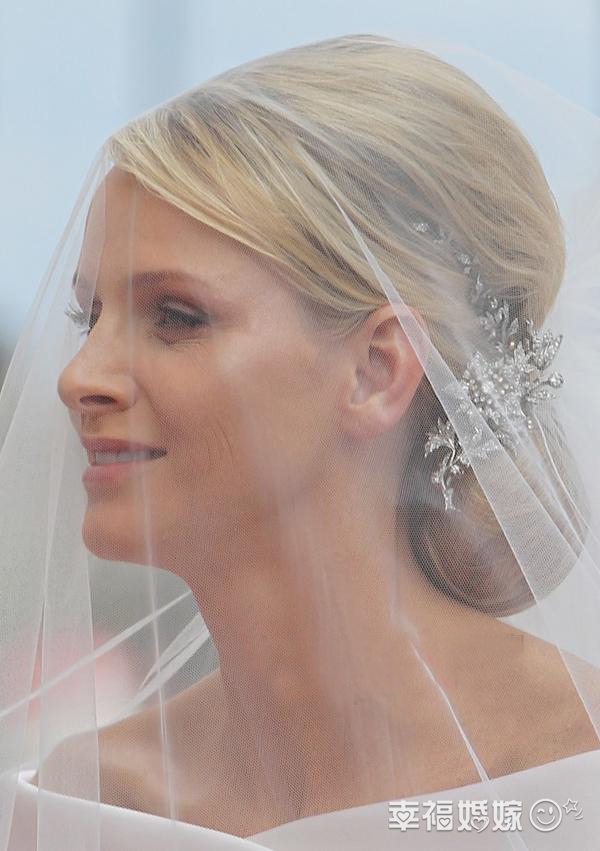 摩纳哥亲王阿尔贝大婚7月2日举办,有“美人鱼”之称的新娘夏琳·维斯托克 (Charlene Wittstock) 身披阿玛尼高定 (Giorgio Armani Prive) 婚纱成为万众瞩目的优雅新摩纳哥王妃! 清透的裸妆为她营造出温婉可亲的淑女印象,大地色系眼影令摩纳哥王妃的眼神更加深邃迷人,虽然眼角依然有明显的细纹存在,但这丝毫不影响王妃的端庄美,反倒衬托出她的淡定坦然的心态。