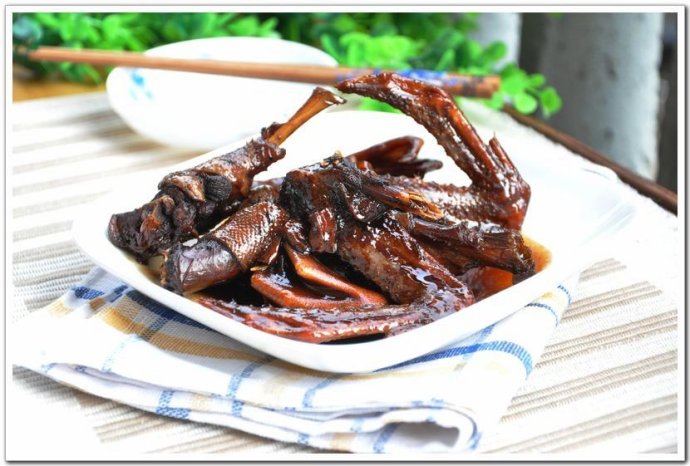 记得小的时候我不会吃鸭脚,每次放在我碗里面的腊鸭脚我都看着很郁闷,因为腊鸭脚上面没有什么肉,大部分都是骨头。有次小姨到家里面来做客,看见我满脸愁云的看着鸭脚,她就抓起了个鸭脚示范给我看,我记得她是从鸭脚的关节部位开始小口小口得咬的,她告诉我她就喜欢嚼这个鸭脚的骨头,非常的美味!我也按照她教给我的方法,开始吃鸭脚,发现果然如此,腊香味其实全部在骨头里面!夏天的时候酌粥,一只就够了!