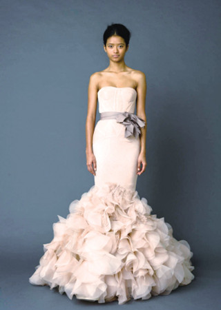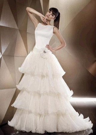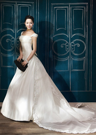 娇小新娘可以选择有独特肩部设计的婚纱,不管是蕾丝,花朵或是亮片,肩部的妩媚让人不由自主将目光聚焦在你的迷人颈部以及脸庞。身高此时已不再是问题了。