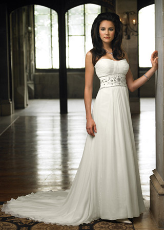 高腰设计的婚纱可是小个子新娘最爱的选择,高腰设计可是拉长腿部线条的奇妙法宝。如果你对自己的腿部比例不是很满意,那就选择高腰设计的婚纱吧!