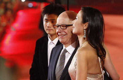 2010年,邓文迪的事业扩展至大荧幕,由她担任制片人的电影《雪花与秘扇》高调开拍。2011年6月,该片正式在各影院上线。图为6月11日,第14届上海电影节开幕,默多克携妻子邓文迪亮相,为《雪花与秘扇》造势。