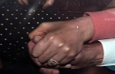 2011年7月,传媒大亨默多克旗下英国报纸陷入窃听丑闻。20日凌晨,在英国议会就《世界新闻报》窃听丑闻质询默多克父子时,一名男子突然从听众席窜起,手拿餐盘,跨过默多克旁边的人对其袭击,身后妻子邓文迪迅速跃起,第一时间给袭击者一巴掌。质询结束,默多克夫妇乘车离开。图为车内,邓文迪紧紧握着丈夫的手。