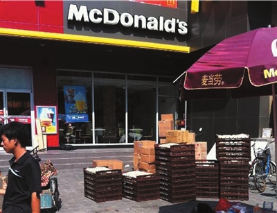 汉堡原料面包堆放在麦当劳门前。