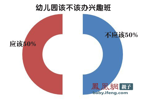幼儿园兴趣班为何“叫不停”,家长们到底对兴趣班持怎样的态度?凤凰网亲子近日的一项调查结果显示,50%的网友认为幼儿园应该开设兴趣班,这样可以为孩子提供更多学习特长的机会。调查结果反映出家长希望孩子多学习特长的美好心愿,但幼儿园的兴趣班能实现家长的愿望吗?
