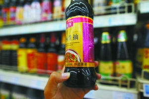 昨日,幸福大街一家超市,大部分品牌酱油都标注着“酿造酱油”。本报记者 薛珺 摄