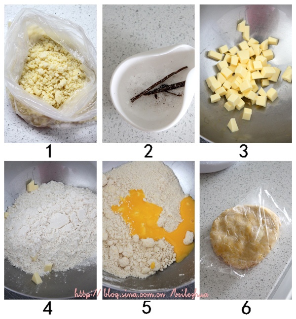 *这里用的所有的黄油都必须是冷冻状态下的,如果室温温度太高,搓黄油粒的时候可以用木铲,以免手温使黄油软化。