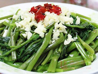 空心菜是碱性食物,并含有钾、氯等调节水液平衡的元素,食后可降低肠道的酸度,预防肠道内的菌群失调,对防癌有益。所含的烟酸、维生素C等能降低胆固醇、甘油三酯,具有降脂减肥的功效。