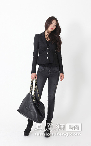 帅气的黑色小西服收腰造型能让你看起来更加性感、高挑,有些露腰的感觉,短短的造型搭配窄脚裤能帮你有种9头身的感觉。