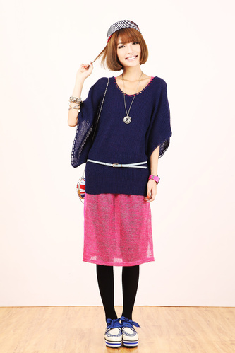 对于对腿型不自信的mm建议这款搭配,宽松的针织薄衫搭配透视效果的半裙同样显瘦,垂垂的感觉显得格外自然,最大的优点就是能让你的小腿看起来非常细!