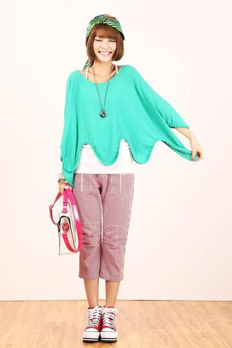 可爱的青色搭配,衣摆的大波浪设计很有童趣,可以内搭吊带穿,层次感更丰富,逛街搭配上一款七分裤就很赞。