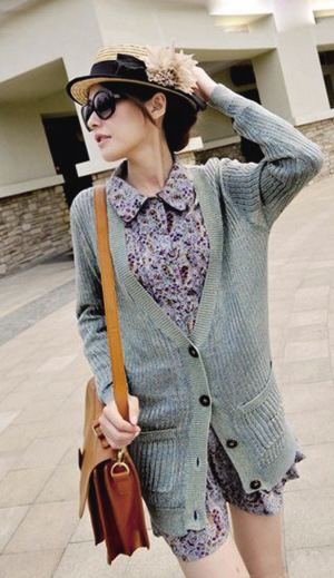 长款大V领针织衫,稍显松身的剪裁手法,修饰出修长纤瘦的体型。内搭碎花连衣裙或是连体裤,露出修长纤细的美腿,形成极致完美的身材曲线,还透露出女性独有的小性感。或是内搭T恤、长袖卫衣或是衬衫,下面搭一条小短裙或是牛仔裤的休闲街风也非常不错呢。日式小清新风秋天一样可以带给你。