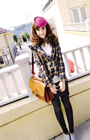 英伦学院风燕尾前襟双排扣耸肩翻领短西服,十分帅气,加入耸肩和双排扣的设计,更增潮味,搭配普通牛仔裤 ,轻松变身街头帅女郎,内衬着一件甜美的白色蕾丝背心,更显柔美动人。