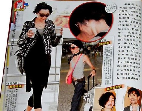 据该杂志称,46岁的张曼玉与39岁的德国籍建筑师男友Ole Scheeren拍拖近4年,一度传出结婚的消息,但最近有传Ole在北京搭上两女,抛下张曼玉远走高飞,痴心一再错付,张曼玉也搬出了北京爱巢,以免睹物思人。日前她秘密返回香港,宽松衣服下仍可见骨瘦如柴,该杂志对她的外貌形容称“树根颈和白骨爪暴现,实在是我见犹怜”。