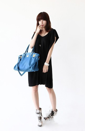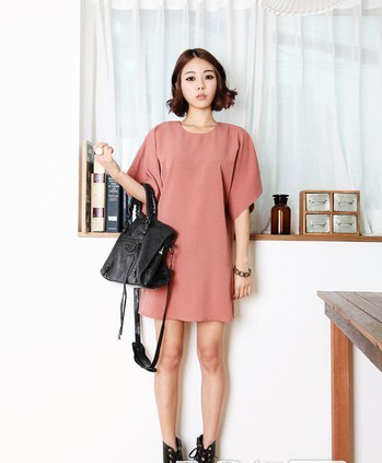 对于简约范儿的MM们来说这款连衣裙就很贴心,插肩袖的设计没有肩宽限制,,背后有拉链开襟穿起来更加舒服,下身随意搭配一件打底裤穿就很nice!