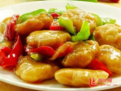 材料:鸡胸脯、红辣椒、青辣椒、油、盐、鸡精、姜、料酒、生抽、水淀粉、葱、白糖