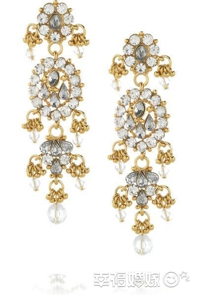 钻石与黄金组合而成的耳坠,可以配合披散的长发,小心不要抢了新娘的风头哦。