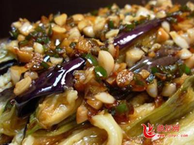 4. 先将茄子倒入热油中炸熟,再用开水浸一下漂去表面的油,放入盘中待用;