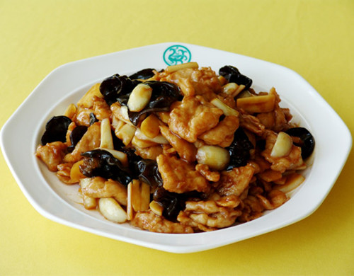 材料:猪肉200克(七成瘦,三成肥),笋,水发木耳,黄瓜共100克,葱姜蒜米少许,酱油30克,醋25克,盐1克,料酒5克,汤40克,味精1克,鸡蛋清半个,水淀粉30克,花椒油5克,花生油750克(约耗35克)。