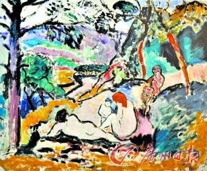 《田园曲》 作者:亨利·马蒂斯(法),野兽派的代表人物,提出“纯粹绘画”的主张。 创作时间:1905年