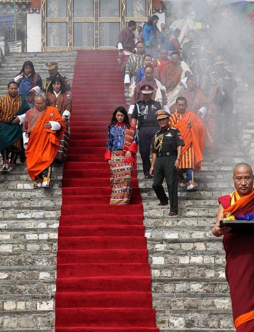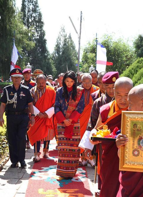 21岁的大学生佩玛昨天摇身一变成为不丹王后,在全国人民的祝福下,与不丹国王旺楚克按传统佛教仪式举行婚礼。