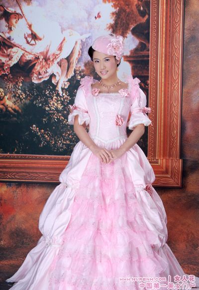 14、 脸部和颈肩是视觉效果的重点,选择结婚照的服装时,荷叶领、开襟 式的领口露出女性性感的锁骨,也极合适。而且,U形公主领的衣服也有使脖颈与脸蛋间看起来更加修长的效果。领口、胸前有蝴蝶领结的衬衫 ,如此也有拉长、修饰脸型的好效果。