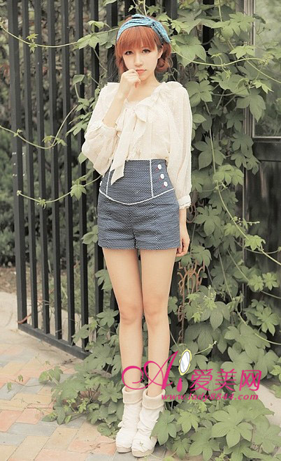 雅致的白色雪纺衫,蝴蝶领结营造甜美氛围,搭配高腰短裤,轻松营造完美比例,清新迷人。