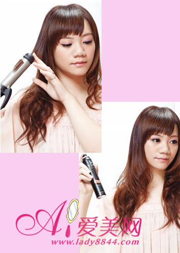 首先用电卷棒从头发中部约耳际处开始卷出中卷的卷度,发量多的女生最后多分几束头发做卷,散开以后更蓬松哦,然后喷上定型发雾。