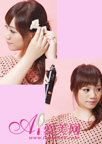 然后就是配上自己喜欢的发饰啦,淡淡的颜色比较清新哦,最后一步就是喷上定型产品了,让迷人的韩式扎发造型持久。