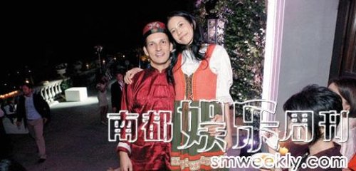 穿中国褂子的新郎和穿意大利裙子的新娘。