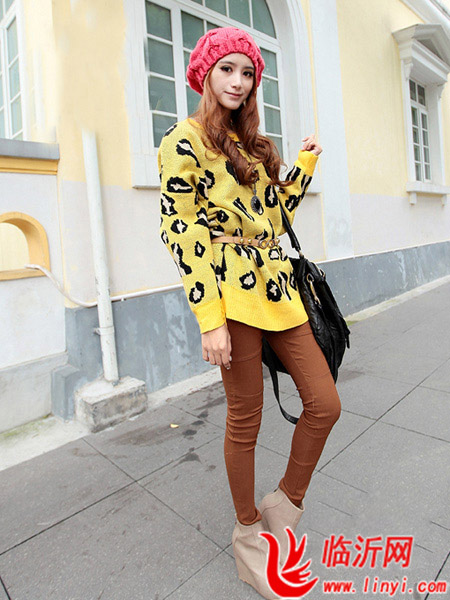 夸张感觉的豹纹图案的针织衫,鲜艳甜美的糖果色彩,散发出迷人的青春气息,松垮的版型,穿着起来没有拘束感,给人以非常轻松甜美的休闲魅力。