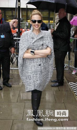 凯莉·米洛(Kylie Minogue) Kylie Minogue这款大衣选的相当特别,“掏”袖的款式带来别样新意,宽松的版型穿起来也很舒适,配上皮靴更有前卫时尚感觉。