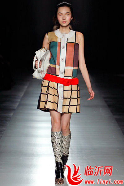 极具标志性的60年代同样成为了许多设计师的灵感来源,多种文化标志性事件带来了巨大的影响,如Yves Saint Laurent所呈现的左岸系列,以及即将上映的Vidal Sassoon的传记片等。这一风格的表现是以大胆的色块以及构成主义灵感的图案呈现在极简廓型的服装中。最具典型性的是Prada来自Yves Saint Laurent1965年的具有开创性的蒙德里安式连衣裙。