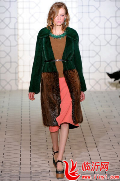面料是同样强大的,比如羊毛在这一季是如此重要:从柔软轻质的奢华羊绒到优质的马海毛或刷毛效果,当然还有色彩鲜艳的条格或传统粗花呢。皮革是个巨大的趋势,这一趋势极端到据说买手在看秀时只关注整场秀中是否有毛皮——“无毛皮不成秀”。从卷曲的剪毛到复古风格的山羊长毛发,或是独特的毛皮混合或拼贴效果:丝滑的俄国羊羔皮与粗糙的浣熊皮,抑或是从天鹅绒般修剪过的水貂皮变形为柔软如羽毛的狐狸皮,这一主题为我们带来了对比性的肌理与外观。并且不要低估了毛皮和麂皮的重要性,他们已在过去成为高街品牌的最佳产品,无论从连衣裙到便装。这一季的毛皮大胆采用了鲜艳的彩虹色,光鲜亮丽的彩色毛皮比如狐狸毛出现在大衣和夹克上,这显然可以商业化地运用到人造毛皮的年轻市场中去。
