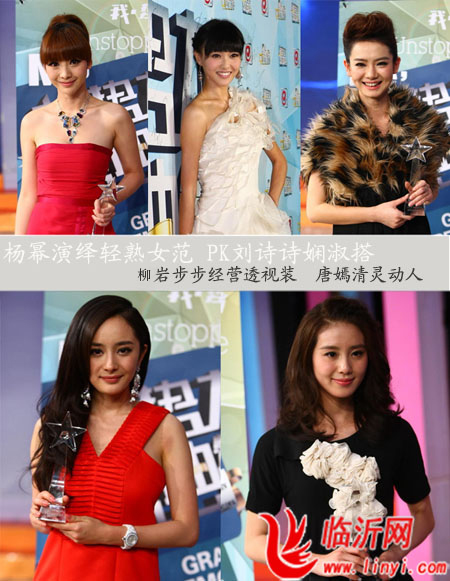 穿越剧《宫》的女主角杨幂频频亮相于拿奖活动中,我们也注意到小女孩已经长大成大美女了,摒弃原本幼稚的装扮,倾情演绎起轻熟女范,而相对于《步步惊心》的刘诗诗,还是一如以往的娴淑装扮,别有一番韵味。还有柳岩、唐嫣、戚薇多位大美女陆续登场。