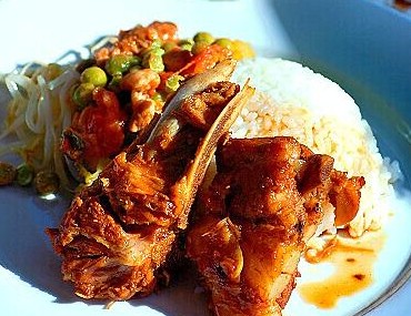 7、浇在米饭上配青菜。