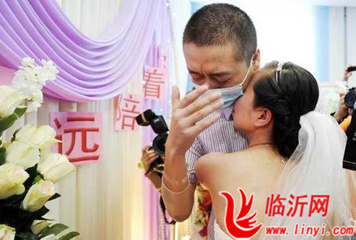 祝福声中,二人结为夫妻,然后,相携相依,穿过医院长长的廊道,新娘郭倩将新郎娄斌送回白血病重症病房。