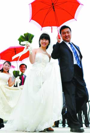 昨日,重庆市进城务工青年举行集体婚礼,新人走向婚礼现场。