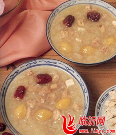 取党参35克,去核红枣10枚、麦冬、茯神各10克,以2000毫升的水煎成500毫升,去渣后,与洗净的米和水共煮,米熟后加入红糖服用。对于心跳加快、健忘、失眠、多梦者有明显疗效。