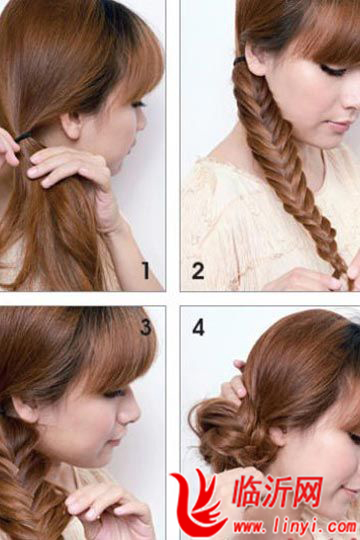 step3 用双手将三股辫拉松,使发辫线条更加明显,发辫松弛自然。