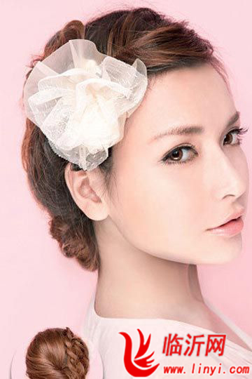 如果想为他留下娴静淑女的印象,这款发型绝对是不错的选择。从前面看,只是干净利落的简单盘发?转过来就会发现大有玄机,很有设计的侧部编发纹理,在传统和时尚之间取得了最佳平衡,即便没有刘海,但花饰也能成为女人味飙升的引爆点。