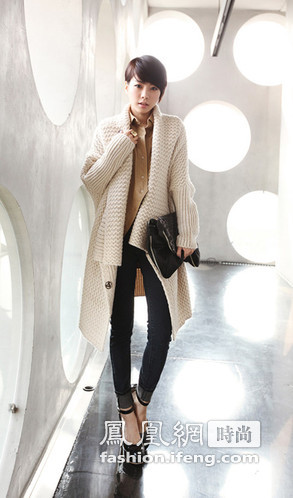 粗针的毛衣开衫,有了一种随性的洒脱感,让衬衫仔裤的OL装扮更有休闲惬意的感觉。多层次的穿搭让整身搭配不再单调,时尚风格随即呈现。