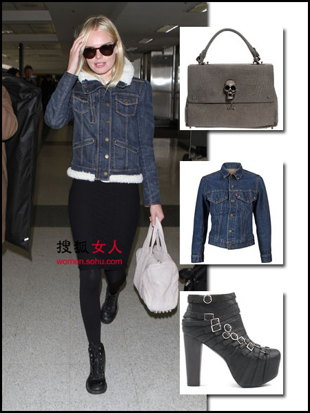 搭配建议:牛仔外套带有白色羊羔毛的搭配显得更有档次,一条修身的黑色A字裙整体富有年轻的情调,加上黑色的靴子,酷劲儿十足。