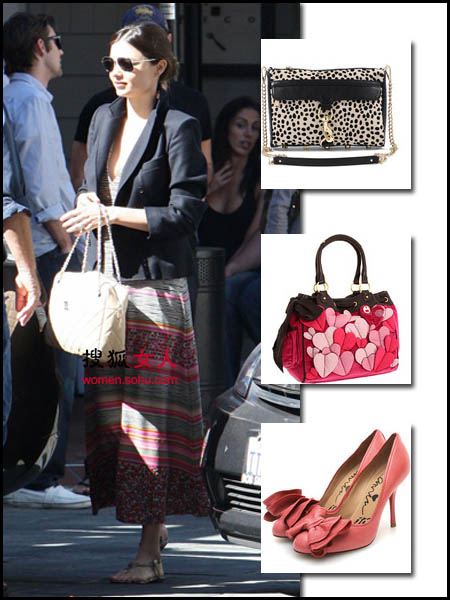 搭配建议:不管是长裙还是短裙都少不了碎花的意味,加上利落的黑色西服领外套,柔美中带着帅气,看看辣妈米兰达可儿的穿着,是不是格外甜美呢?