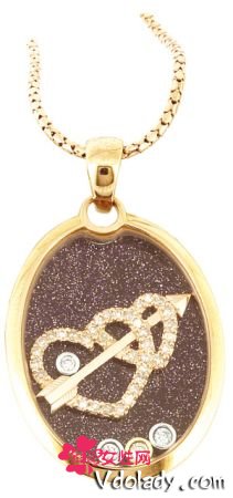 推荐理由:爱心元素点缀在夜色星空般的紫金沙背景中,数枚圆形小钻经过独特工艺,在吊坠间跳转。