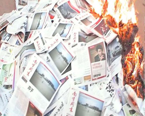 太原有民众焚烧近期发行的《南方周末》。