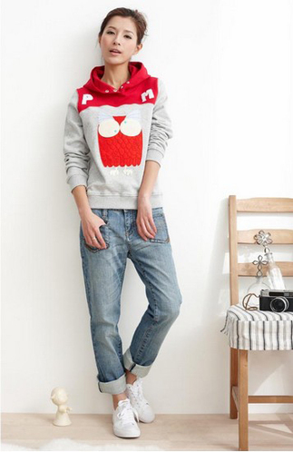 跳跃的红色和低调的灰白联袂,将年轻人蓬勃的精气神展现出来。胸前具有浮雕感的图案,卡通可爱,一眼看去有些摸不着头脑,让人忍不住想要多看几眼。搭配简单的仔裤,十分休闲舒适。