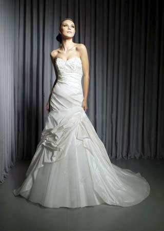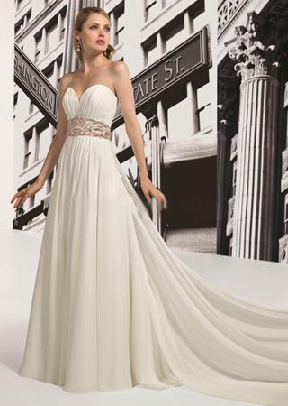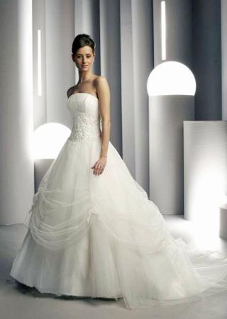 在一次婚纱款式的问卷调查中,细肩带的款式被大部分男士认为是最希望伴侣选择的款式,可见在男士的心目中,细肩带是很性感的。这款婚纱绝对是经典款式。