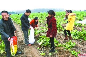 37岁的韩红刚说,他是河南安阳滑县人,在郑州花园口黄河大堤附近承包了80亩黄河滩地,拿出60亩地栽种萝卜。去年他试着种了点儿萝卜,批发价每斤三四毛钱,收入还行,所以今年一下子种了60亩。但因为今秋郑州近郊菜农的蔬菜长势喜人,菜贩子不愿跑远路来收购,萝卜批发价跌到四五分钱一斤。他种的萝卜大的一个有5公斤重,60亩的产量有好几十万公斤。拔萝卜还得消耗人力;拉到市里去卖吧,连油钱都赚不回来。眼看着天气越来越冷了,总不能眼睁睁看着萝卜烂在地里,他和家人商量后决定,不如做好事让市民拿回去吃掉。