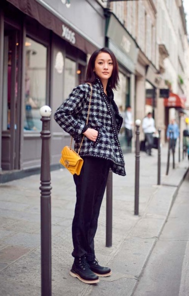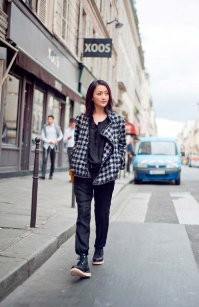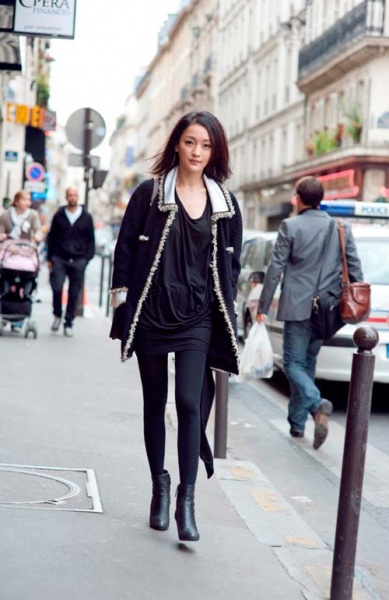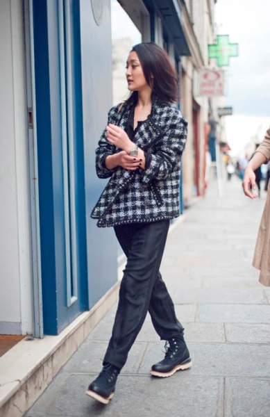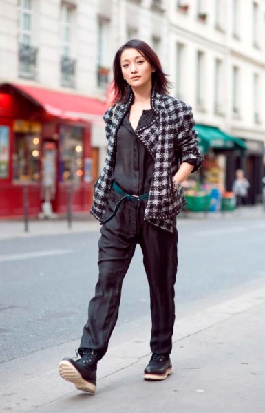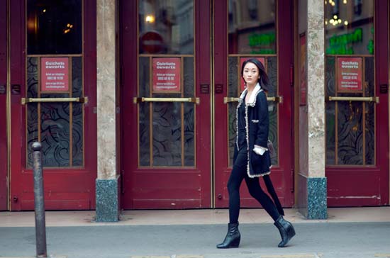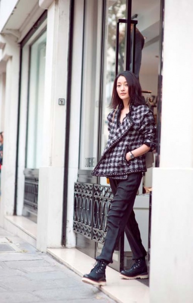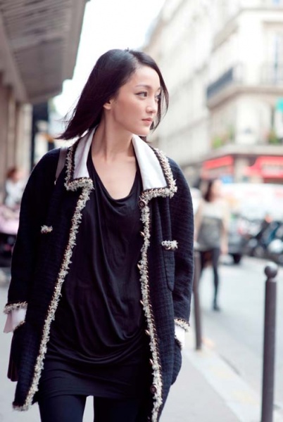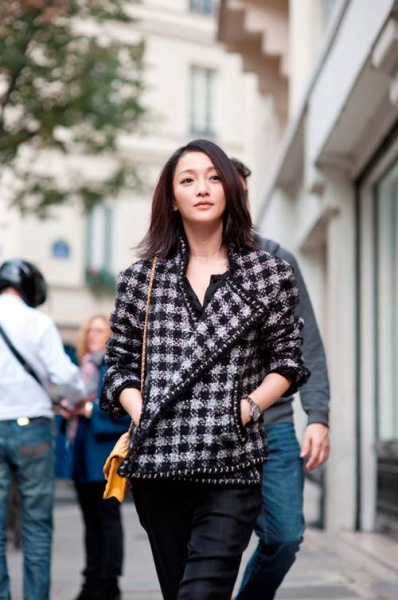周迅最新巴黎街拍 通身chanel混搭超有范儿